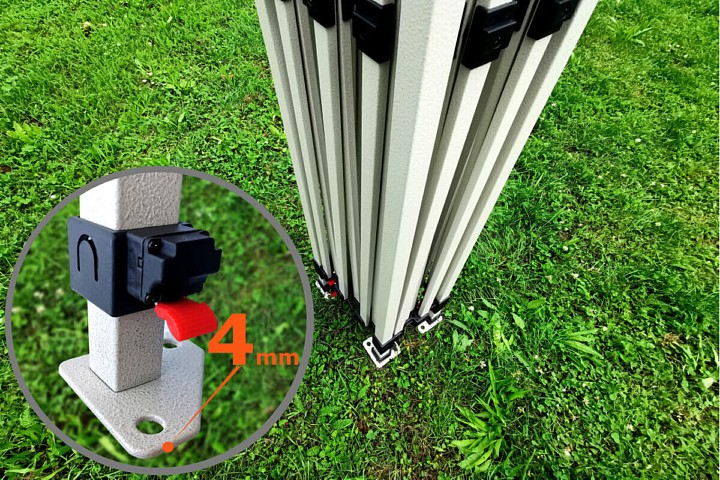 Résistance au vent : Le modèle en super acier résiste à des vents allant jusqu'à 40 km/h. Les pieds de la structure sont équipés de trous pour un ancrage solide. Vous recevrez les piquets d'ancrage avec la tente tout à fait gratuitement pour votre sécurité maximale.