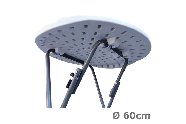 La table de bar pliante en plastique avec un comptoir rond de 80cm / 60cm est fabriquée en plastique HDPE très résistant qui ne jaunit pas. L'un des principaux avantages de cette table de bar pliante est son montage en quelques secondes, ainsi que sa grande résistance et stabilité.