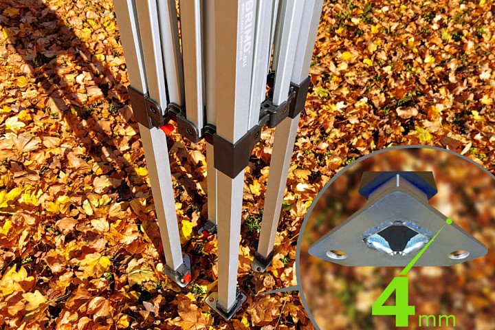 Le pavillon se caractérise par une grande résistance aux conditions météorologiques. Son utilisation est également possible dans des endroits venteux. Malgré son faible poids, il est très robuste et, avec un ancrage correct, il résiste à des rafales de vent jusqu’à 60 km/h.