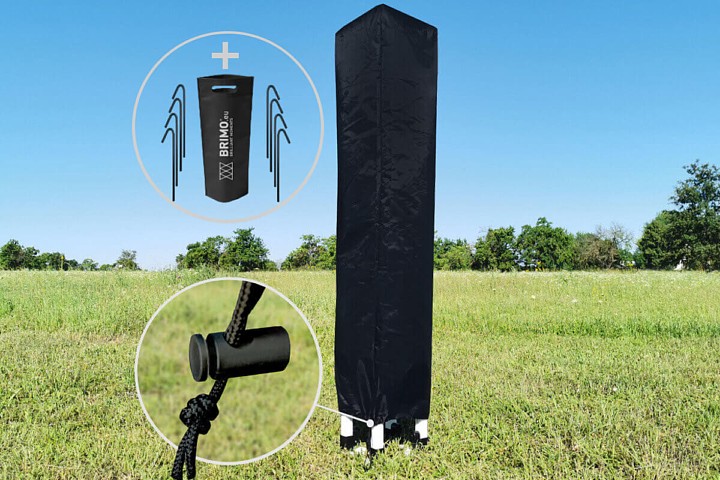 - Modèle Exclusive Acier utilisé par vent jusqu'à 50 km/h. Pieds avec trous pour l'ancrage au sol à l'aide de piquets – offerts !
