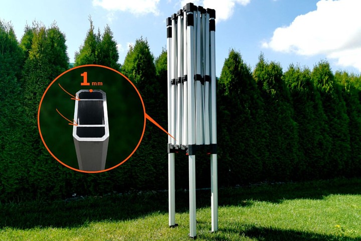 - Structure robuste : Structure automatique en aluminium avec une épaisseur de profil supérieure de 1 mm ou plus. Elle garantit une stabilité maximale et une longue durée de vie, même en cas d'utilisation très intensive et fréquente.