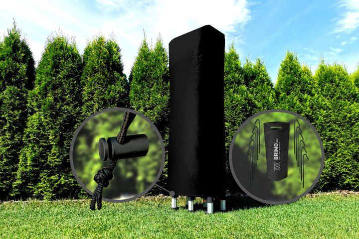 - Matériau du toit : 100% polyester imperméable (350 g/m²) avec revêtement en PVC. Il est extrêmement résistant à la déchirure, protège des rayons UV et garantit une protection fiable contre la pluie et le soleil.