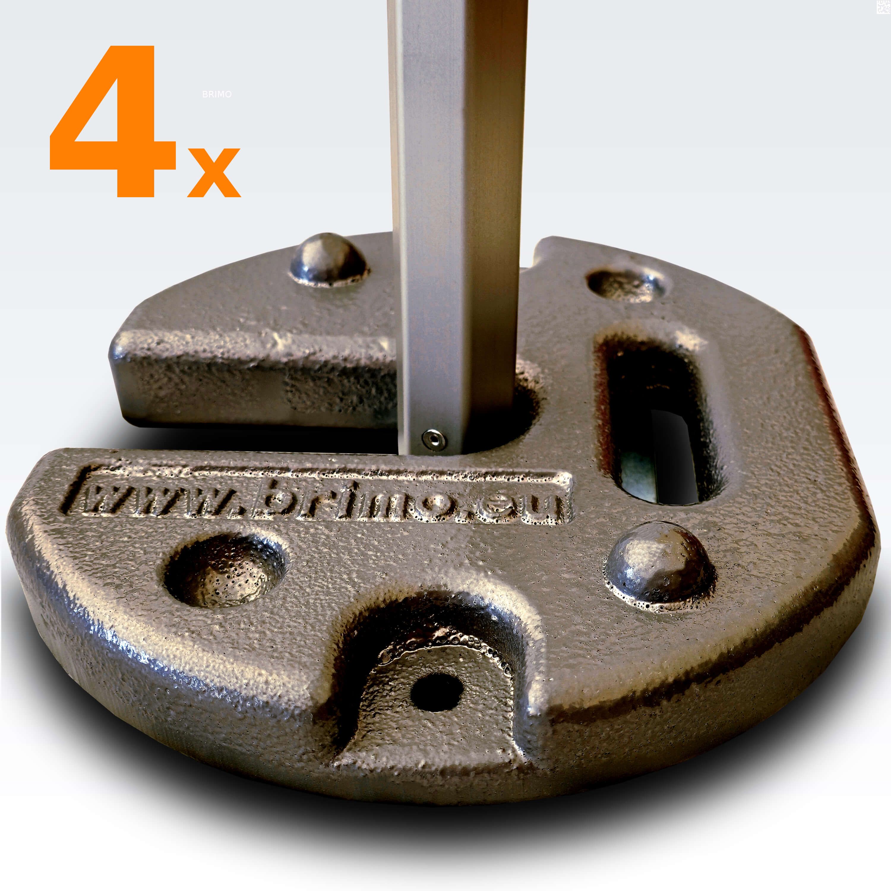 - Pour les tentes de plus de 3x3 m, nous recommandons d’utiliser 2 contrepoids (23 kg) par pied.