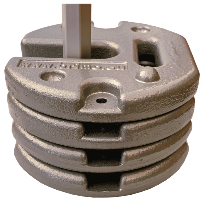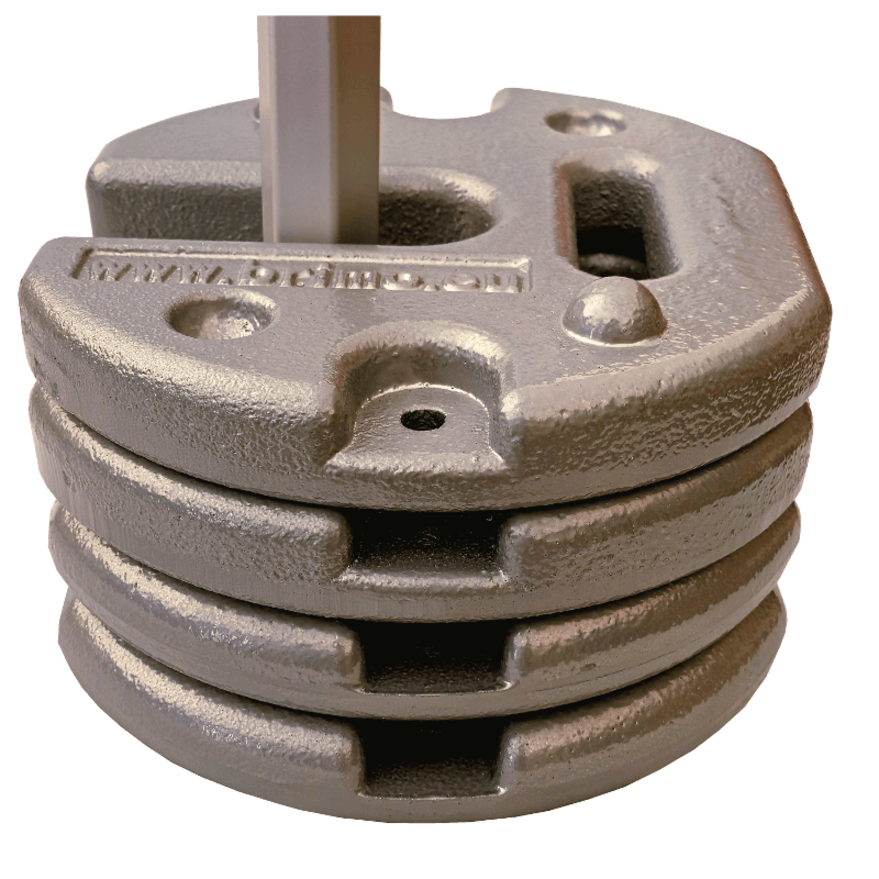 Les poids en acier, communément appelés contrepoids, sont une solution pratique, rapide et efficace pour alourdir la tente. Si les piquets que vous recevez gratuitement avec chaque tente ne suffisent pas ou ne peuvent pas être utilisés en raison d’une surface dure, il existe une alternative sous forme de poids en acier. L’ancrage est rapide : il suffit de placer le poids en acier sur le pied de la tente et le tour est joué. Ils sont vendus en ensembles.