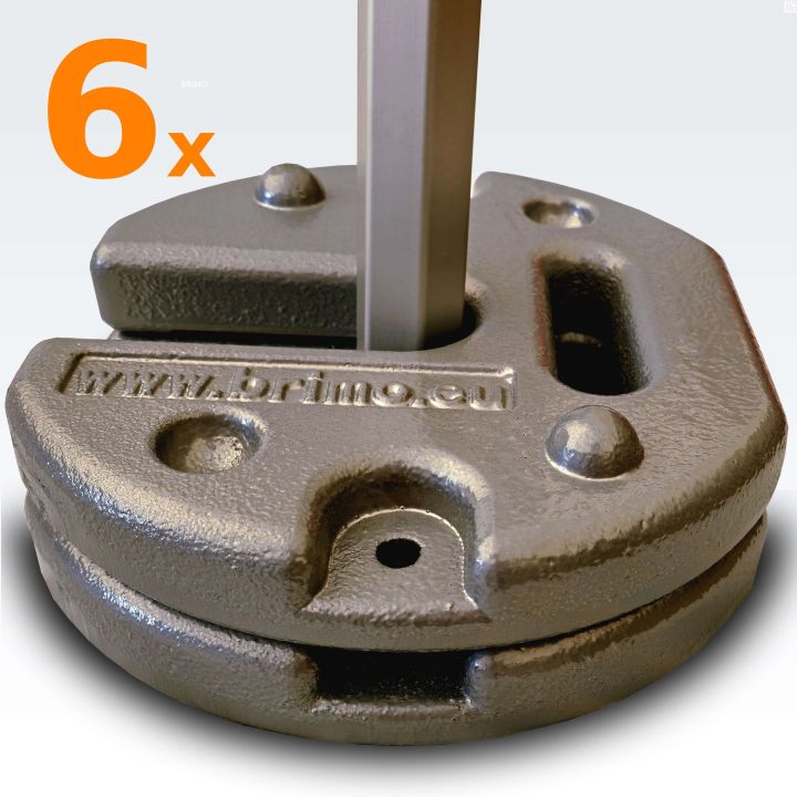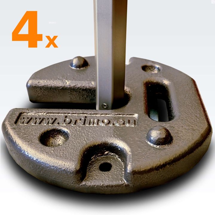 Pour les tentes de 3x3 m et plus, nous recommandons d’utiliser 2 poids par pied de tente, donc si la tente a 4 pieds, utilisez 8 poids ; pour une tente avec 6 pieds, 12 pièces. Équipés d’une poignée pratique pour faciliter le transport. Les poids peuvent également être empilés. Pour éviter d’endommager les poids, rangez-les directement près des pieds de la tente. Ne laissez pas tomber les plaques sur une surface dure, risque d’endommagement.