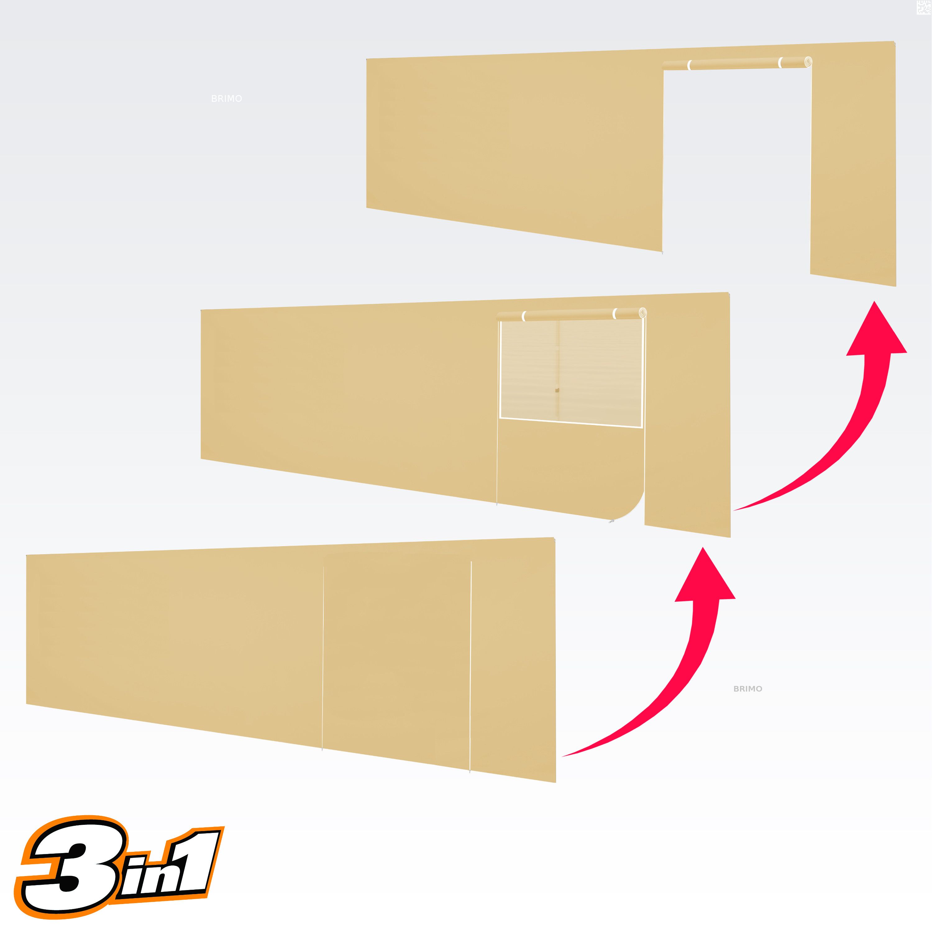 Cette paroi multifonctionnelle ferme complètement votre tente. Le kit de tente de base comprend trois parois pleines de la couleur de la toile. Vous pouvez également choisir une quatrième paroi dans la couleur dont vous avez besoin. La paroi peut être utilisée comme paroi pleine, paroi avec fenêtre ou comme entrée de tente grâce à la porte à fermeture éclair.
