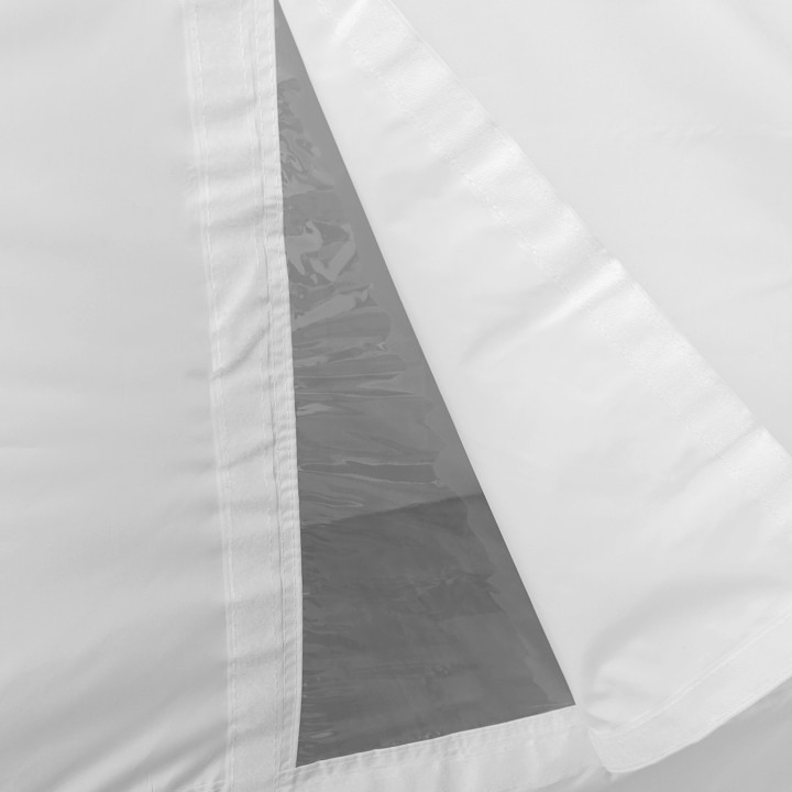 La porte zippée permet un accès facile à la tente. À l’emplacement de la porte se trouve une fenêtre en PVC qui laisse entrer suffisamment de lumière dans la tente, même lorsqu’elle est fermée. Il est également possible de fermer la fenêtre en PVC avec un tissu de la même couleur que la paroi pour créer une paroi pleine. Chaque paroi est fixée au toit avec du velcro de 5 cm. L’installation de la paroi latérale est rapide. La paroi est principalement utilisée par mauvais temps. Sous la tente, vous disposerez d’un espace sûr et sec. Le matériau de la paroi est identique à celui de la toile restante.