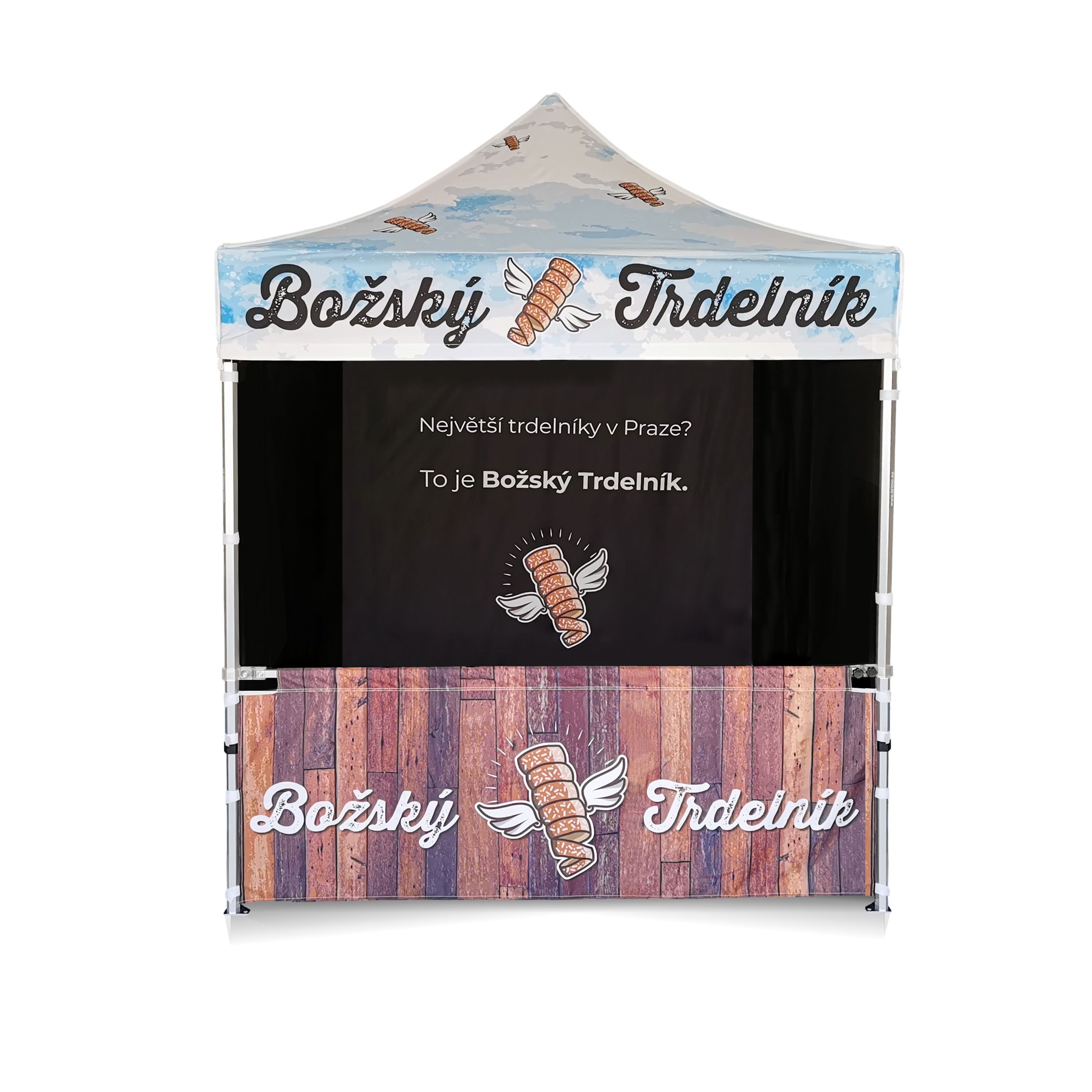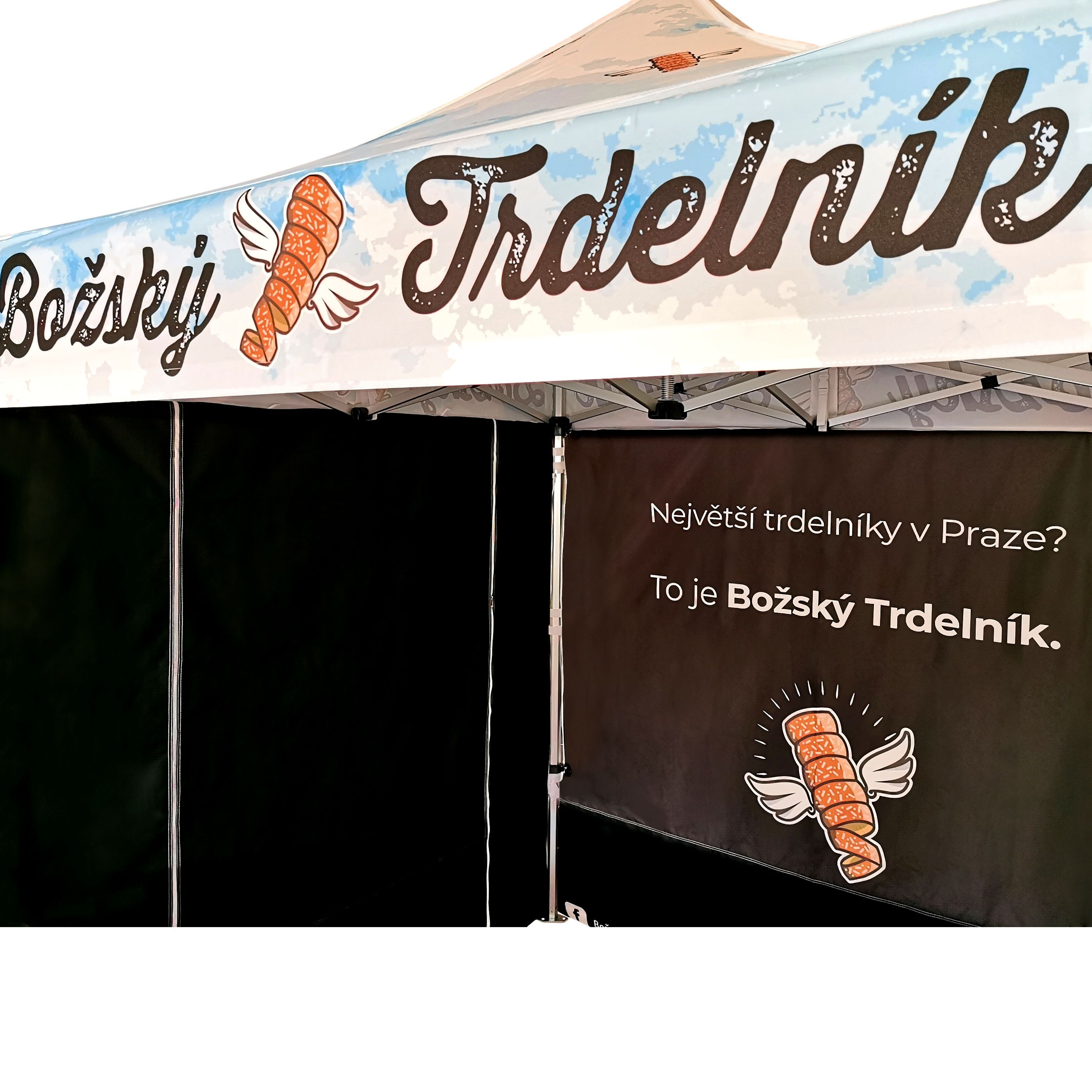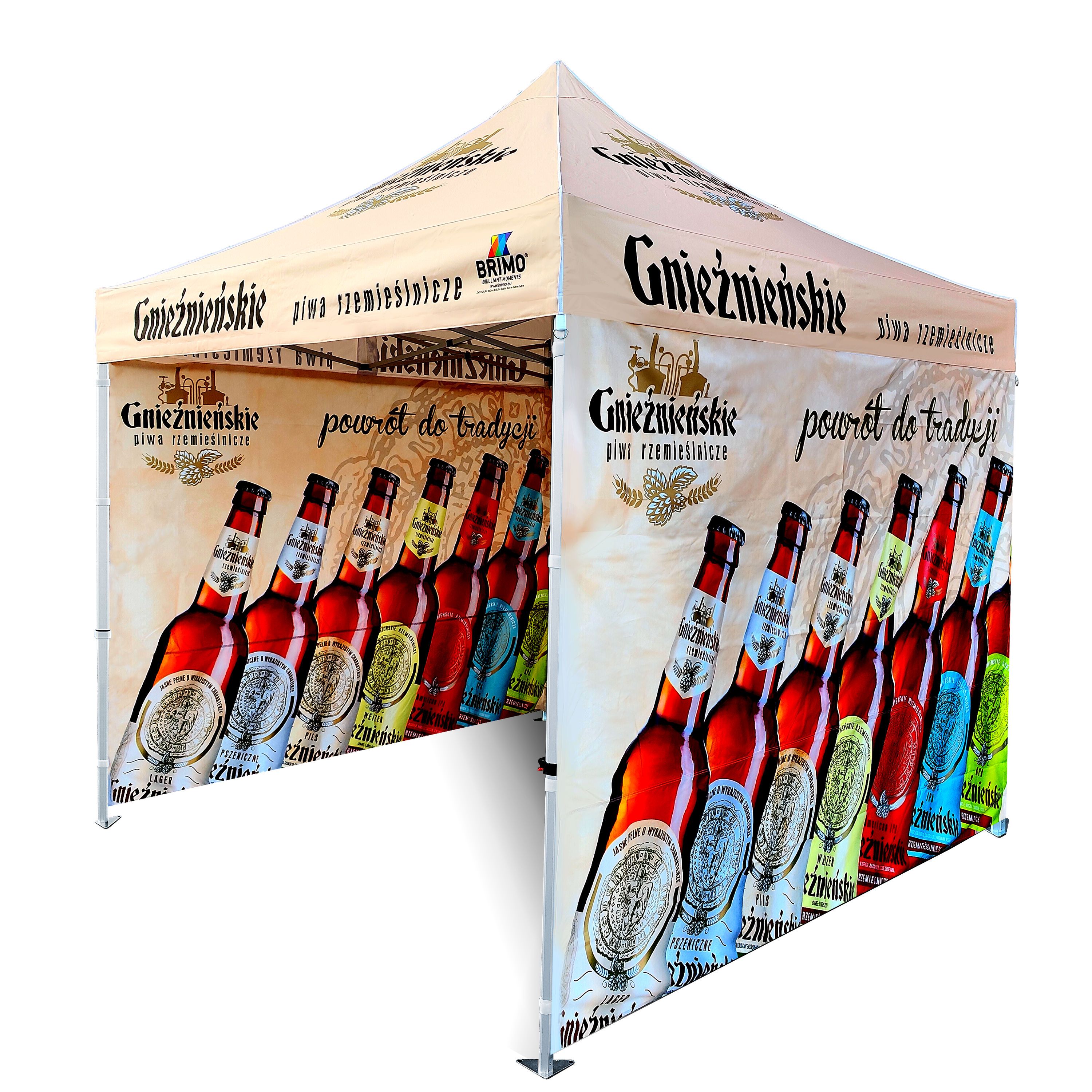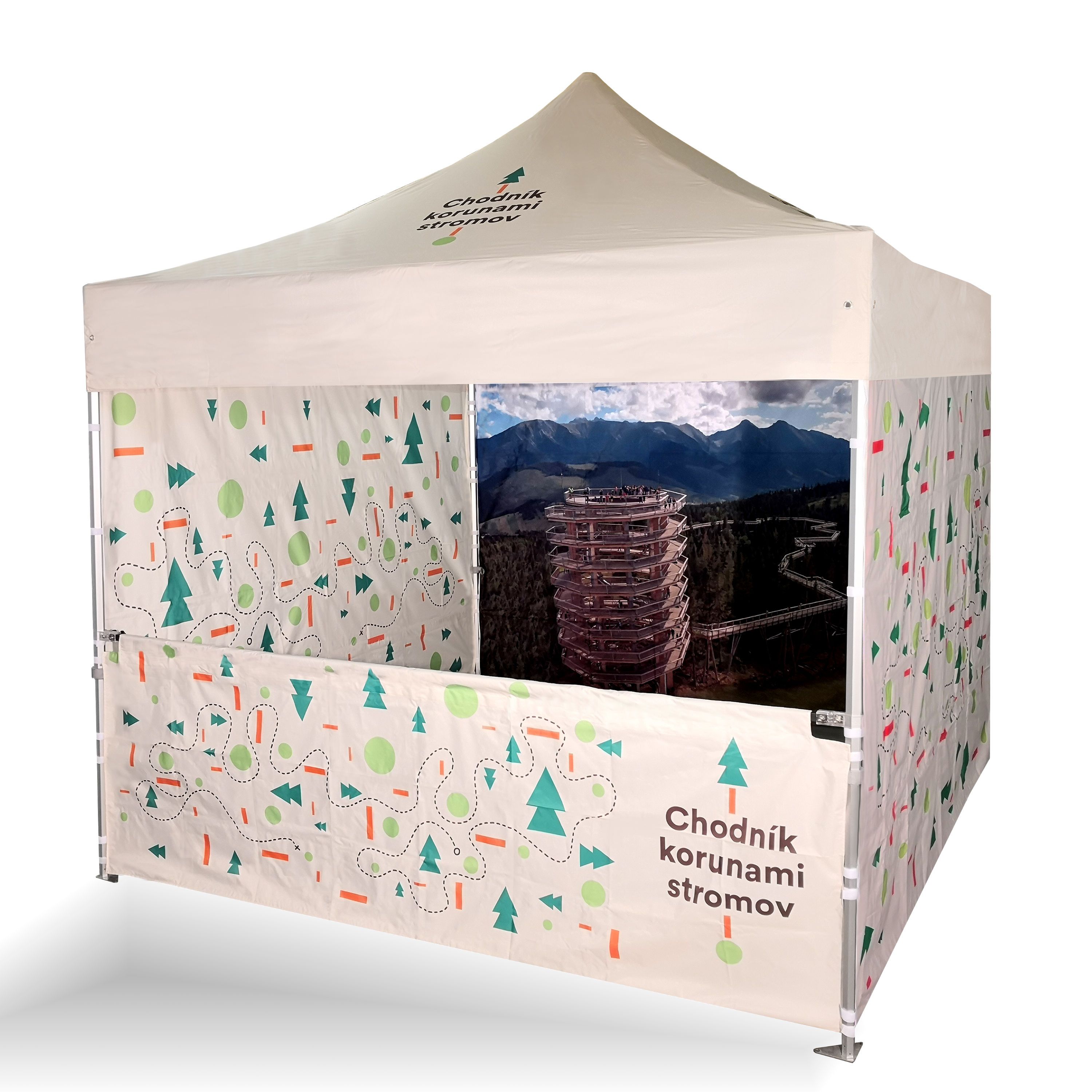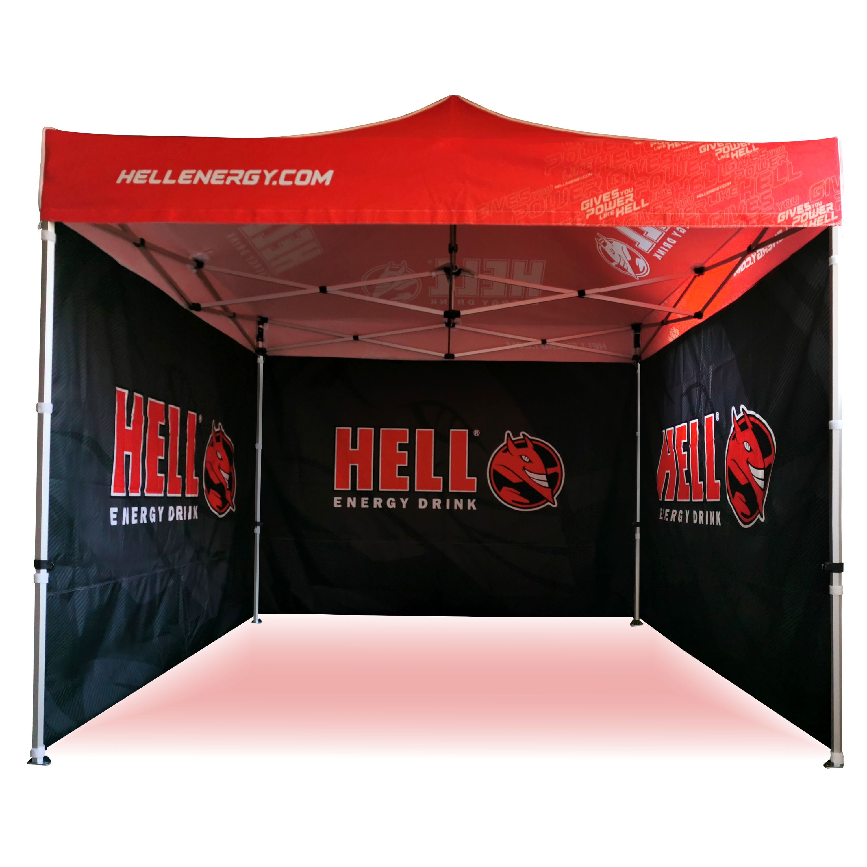 Les couleurs sont très vives, cette méthode reflète parfaitement chaque détail des tentes publicitaires. Les couleurs intenses attirent l'attention et la sublimation garantit une utilisation durable sans perte de couleur. Dans cette méthode, le prix reste constant quelle que soit la taille de l'impression (la taille de l'impression n'influence pas le prix, le prix des murs ou du toit reste inchangé). Plus l'impression est grande, plus la publicité est visible.
