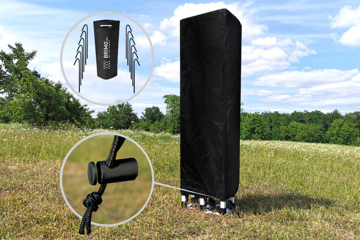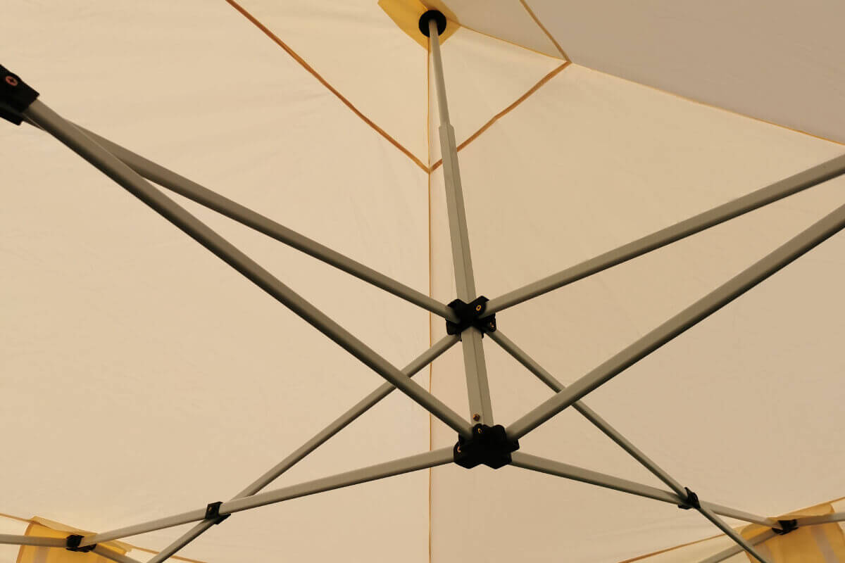 L’une des tentes les plus robustes de notre offre résiste au vent jusqu’à 50 km/h. N’oubliez pas d’ancrer la tente avec des sardines sur des surfaces souples ou des poids en acier ou des sacs de sable. C’est une tente vraiment stable et l’un de nos modèles les plus vendus.