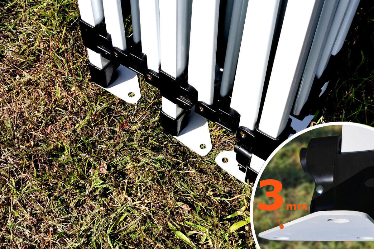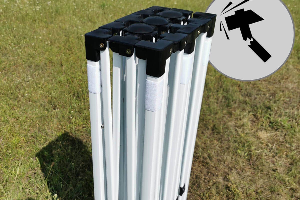 Le design moderne vous satisfera. La structure en acier est légère, et la tente est facile à transporter. Grâce au système de déploiement automatique, la tente 3x6m peut être montée et démontée facilement n’importe où. Aucun outil supplémentaire n’est nécessaire. Les pieds ont un profil carré et chaque partie peut être remplacée facilement grâce aux connexions vissées.