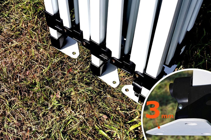- Modèle Exclusive Acier utilisé par vent jusqu'à 50 km/h. Pieds avec trous pour l'ancrage au sol à l'aide de piquets – offerts !