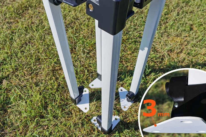 La bâche de toit en polyester est renforcée par une couche de PVC à l’intérieur. Toutes les coutures sont doubles et scellées avec un ruban thermique. Ces tentes pliantes peuvent être utilisées partout : dans les jardins, comme abri de terrasse ou encore comme stand lors de salons et foires. Leur énorme avantage est leur structure ciseaux qui se monte en quelques secondes.