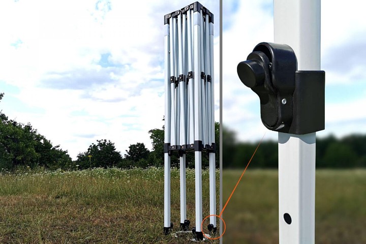 Le montage rapide et le gain de temps sont essentiels. Grâce au système automatique, aucun outil n’est nécessaire. Quelques étapes suffisent pour que la tente soit prête à vendre vos produits. Chaque pièce est remplaçable grâce aux connexions vissées. Vous apprécierez ceci si la structure est endommagée, pas besoin d'acheter une nouvelle tente, il suffit de remplacer la pièce. Les pièces détachées sont gratuites la première année.