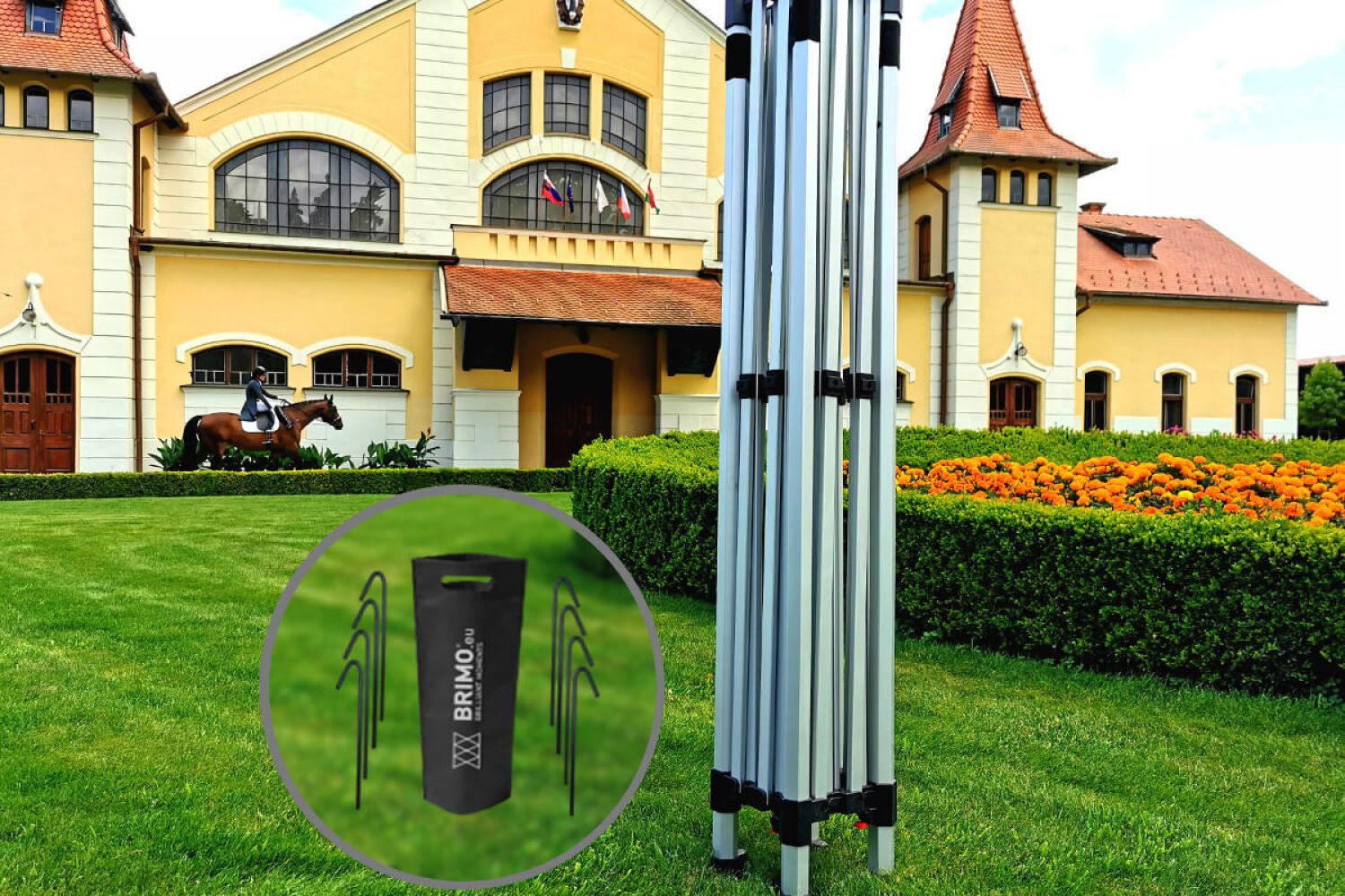- Résistance au vent : Le modèle Exclusive en aluminium résiste à des vents allant jusqu'à 60 km/h. Les pieds sont dotés de trous prévus pour un ancrage solide. Vous recevrez les sardines d'ancrage avec la tente tout à fait gratuitement pour votre sécurité maximale.