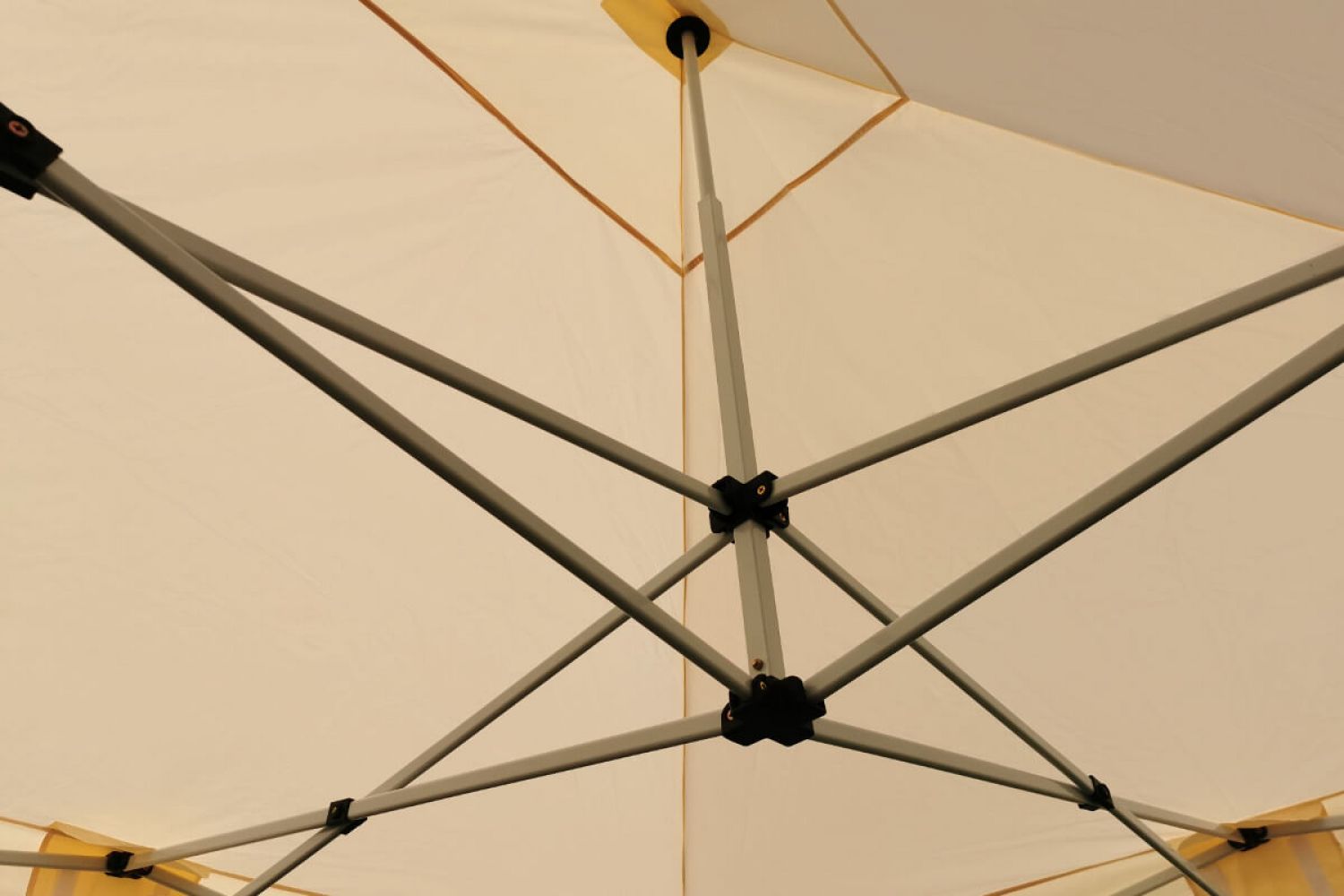 Le cœur de la tente est une structure de haute qualité avec un revêtement par poudre de couleur ivoire, protégeant la tente de la corrosion et des dommages mécaniques. Cette finition offre les avantages suivants :