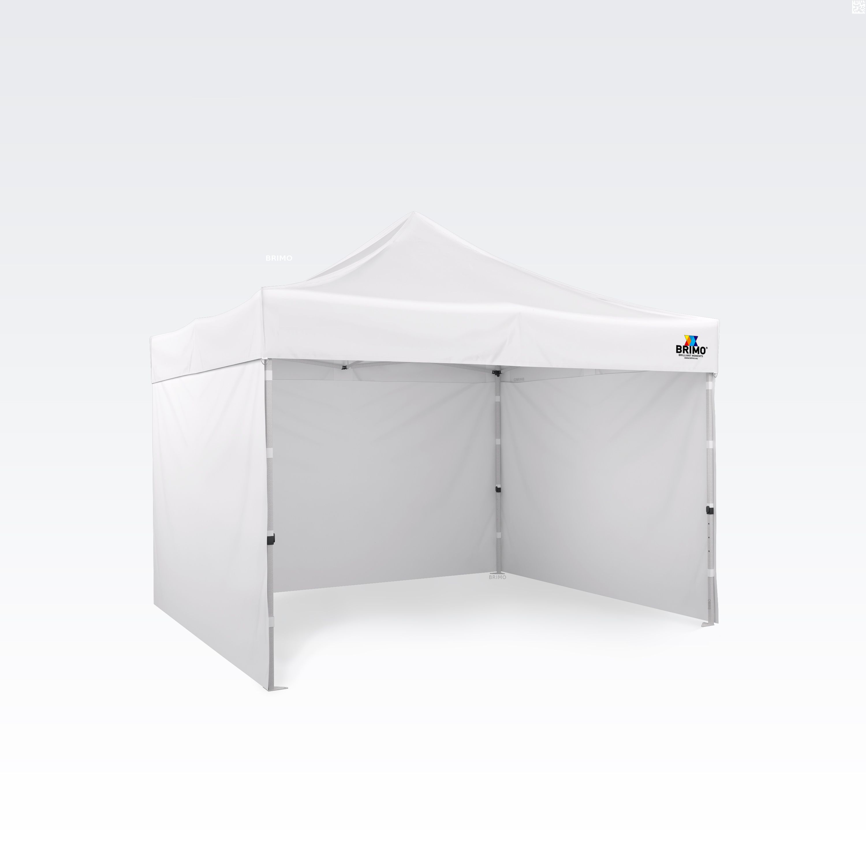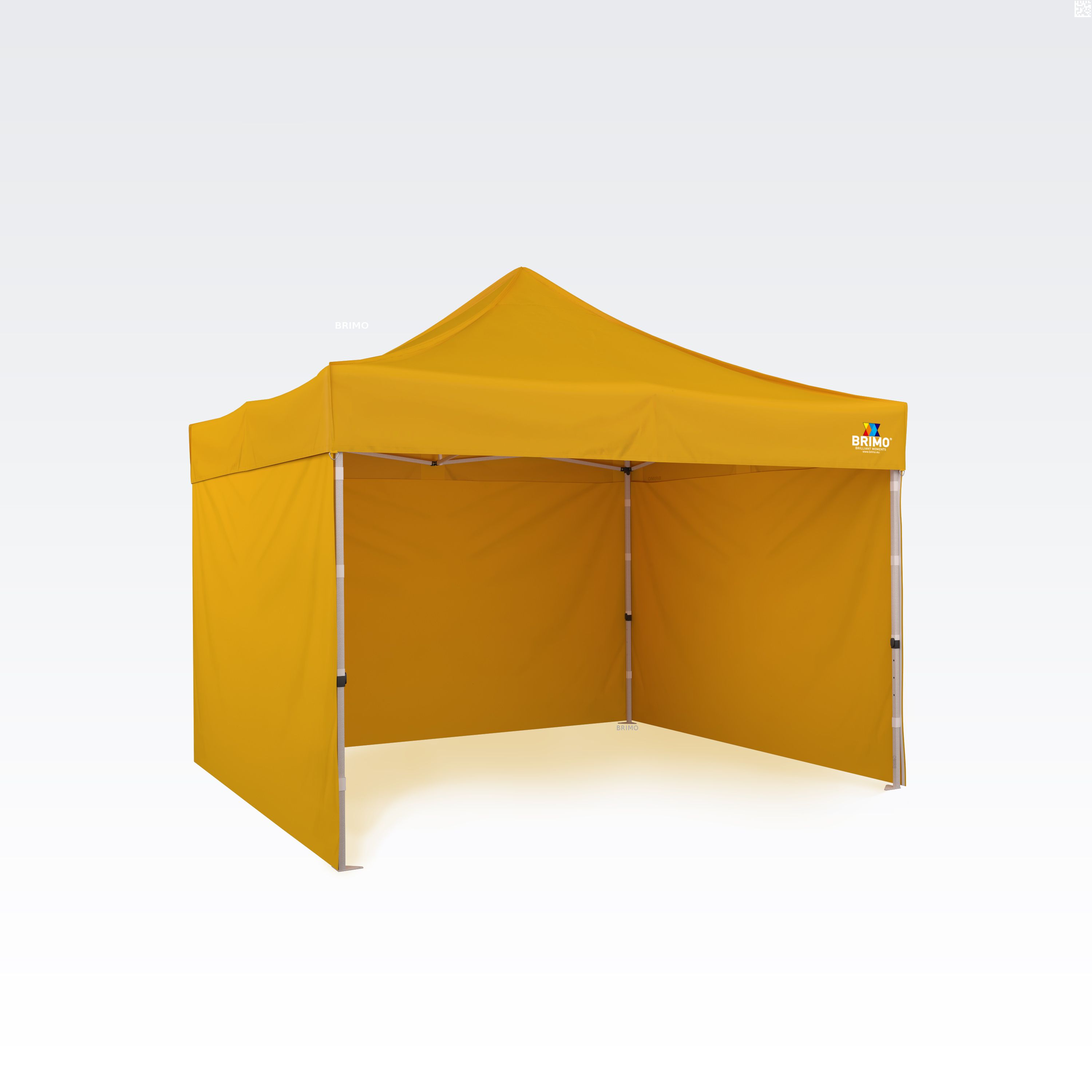 La bâche de toit et les parois latérales sont fabriquées en tissu polyester à tissage dense de 330 g/m2 avec une couche interne en PVC. Cette combinaison garantit que ni la pluie persistante ni le soleil radieux ne gâcheront votre événement. Les parois latérales se fixent facilement au toit via velcro, chaque paroi étant amovible individuellement pour une flexibilité maximale.