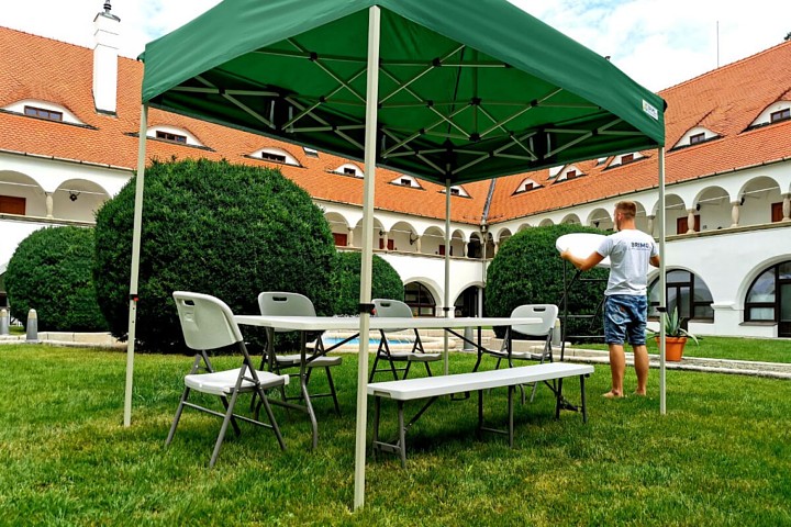 Notre tente en acier Super a été conçue avec un accent mis sur la sécurité. Avec un ancrage correct et l'utilisation de poids, la structure peut résister en toute sécurité à des vents allant jusqu'à 40 km/h. Mais le meilleur réside dans la manipulation : grâce à son mécanisme pliable bien pensé, vous déploierez la tente en seulement 40 secondes. Le processus peut être réalisé par une seule personne sans aucun outil, vous faisant gagner un temps précieux pour vos clients.