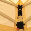 - Matériau du toit : 100% polyester imperméable (350 g/m²) avec revêtement en PVC. Il est extrêmement résistant à la déchirure, protège des rayons UV et garantit une protection fiable contre la pluie et le soleil.