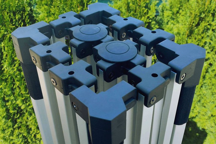 Créer un espace abrité en quelques secondes ? Avec notre tonnelle, c'est une réalité. Le système de déploiement automatique est un véritable jeu d'enfant et peut être manipulé par n'importe qui sans outils. Le temps gagné peut être consacré à la décoration de la tente ou à la préparation de vos supports promotionnels. Le cœur de la tonnelle est sa structure légère en aluminium, qui facilite le transport et la manipulation.