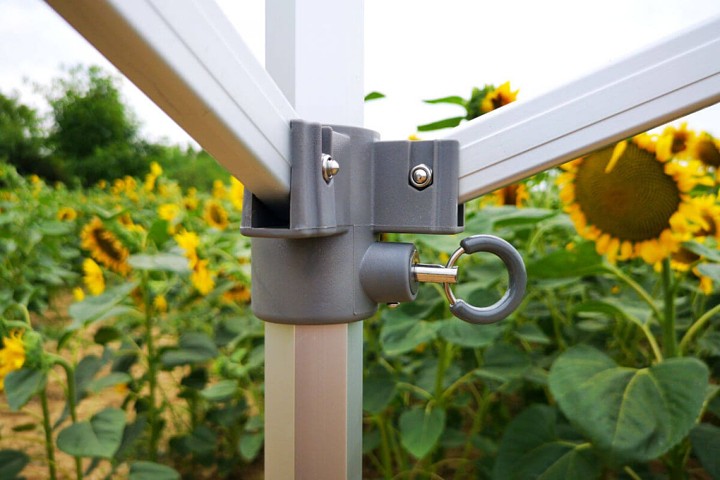 - Résistance au vent : Le modèle premium en aluminium résiste à des vents allant jusqu'à 70 km/h. Les pieds sont dotés de trous prévus pour un ancrage solide. Vous recevrez les sardines d'ancrage avec la tente tout à fait gratuitement pour votre sécurité maximale.